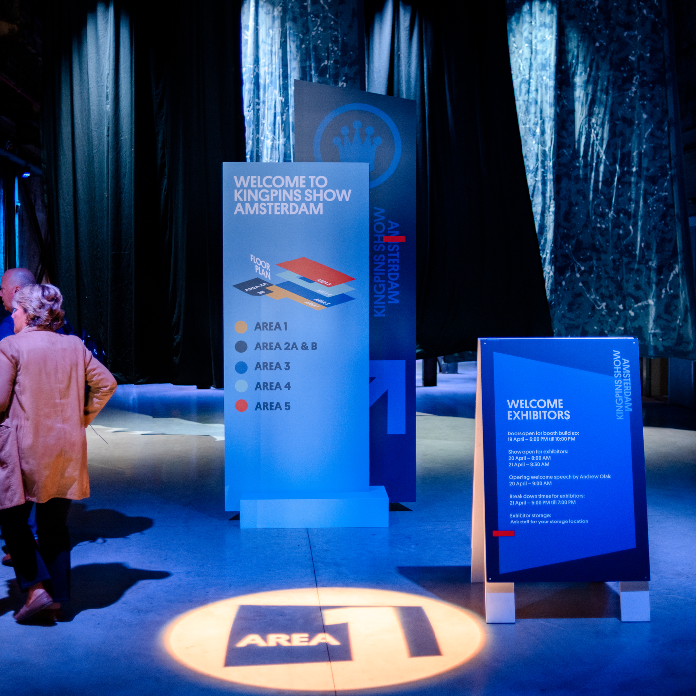 This long running 2-day event for the denim industry went xxl for their return to Amsterdam and landed at the iconic Sugar City location. We made a new updated identity for them including a new logotype, signing, and wayfinding system, all to pair with their existing Kingpins icon.