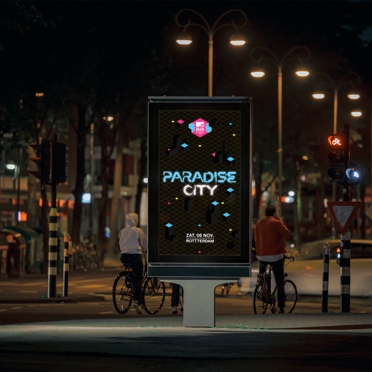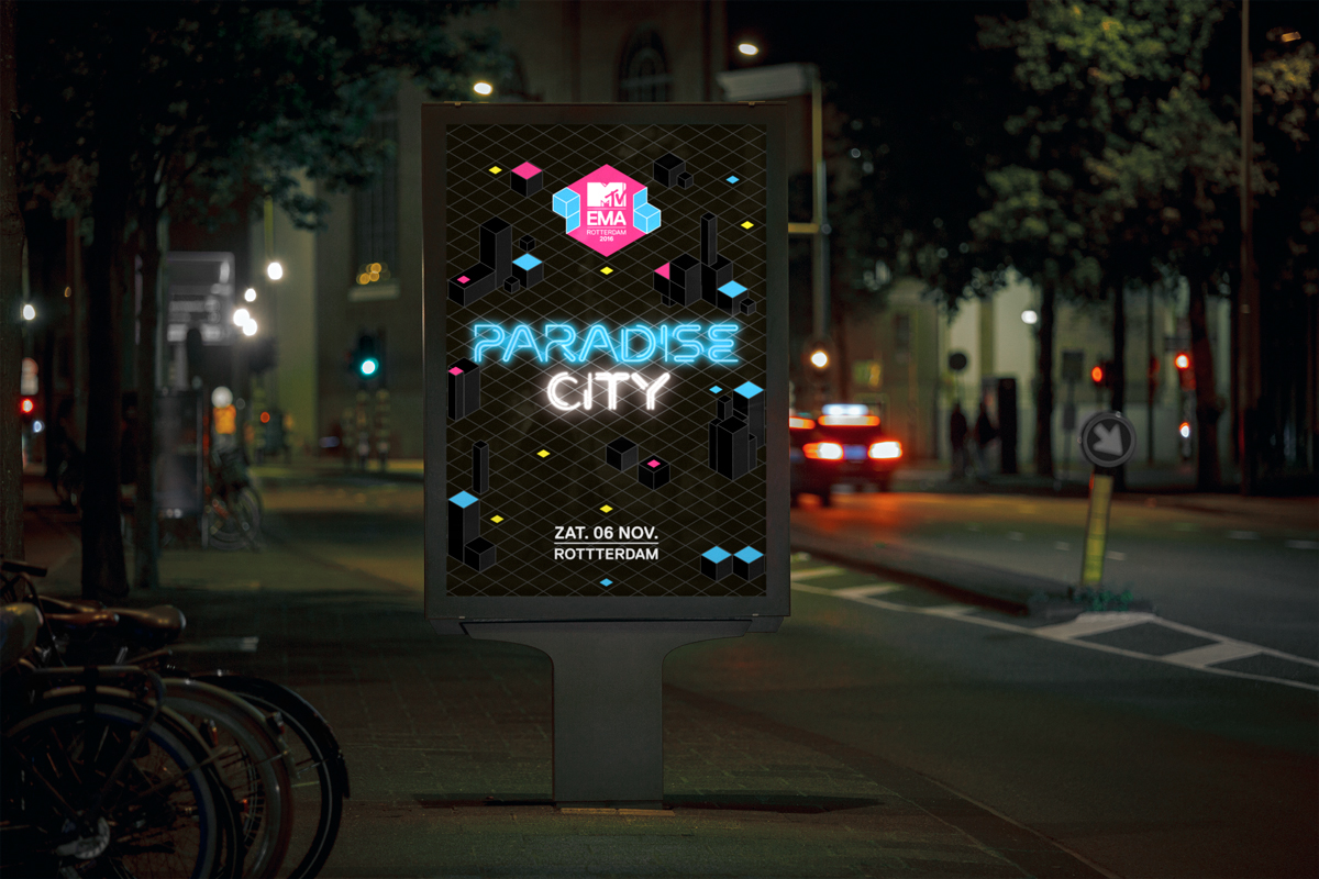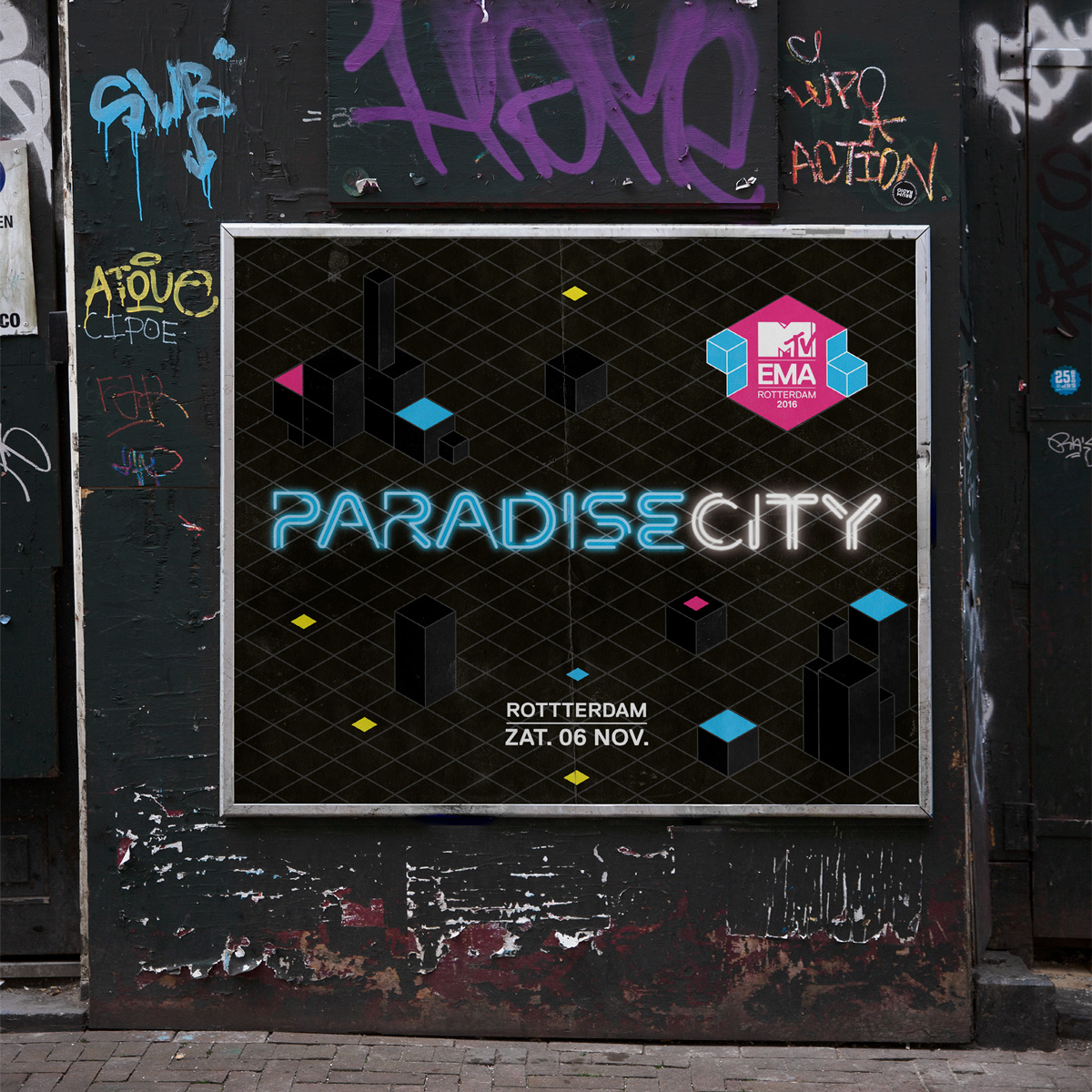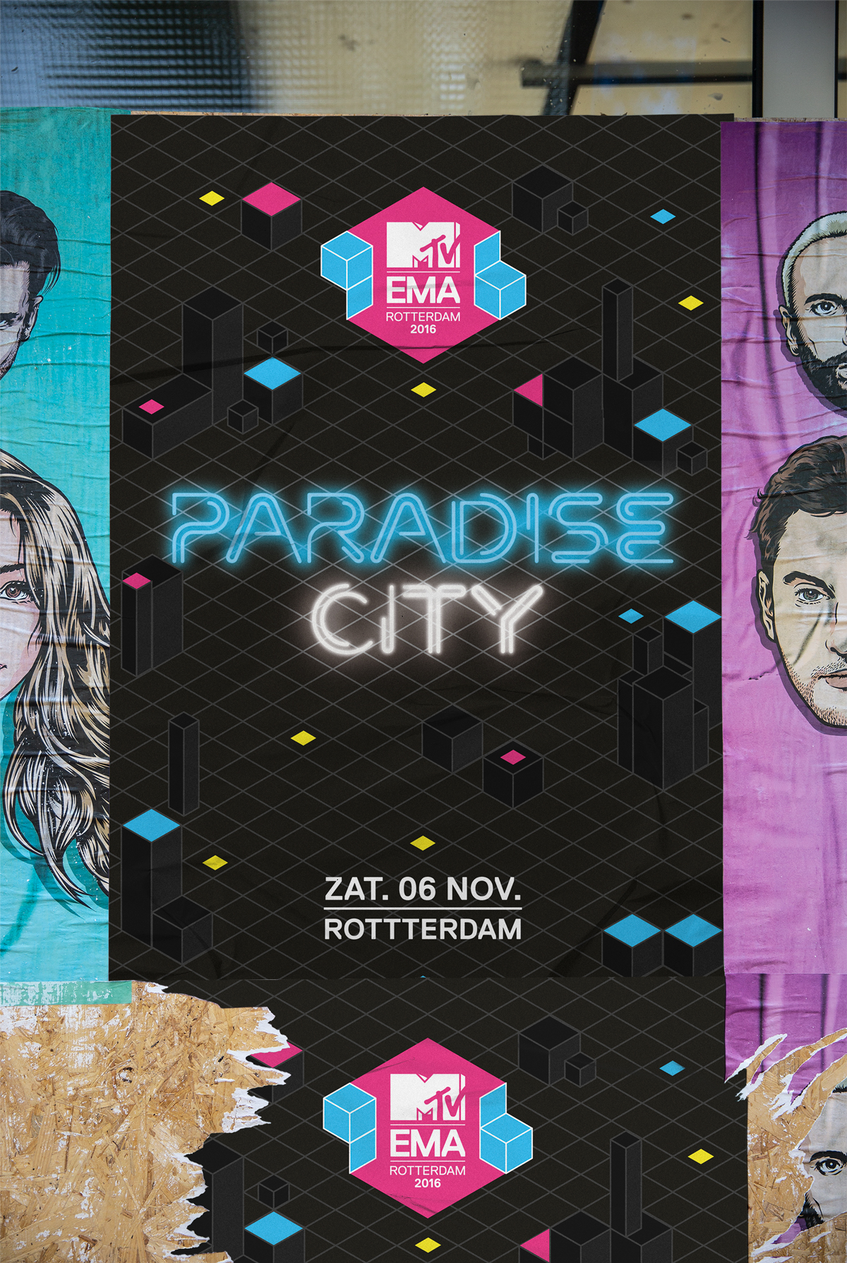For the official after party of the MTV EMA awards I was asked by Wink to create an identity for this event. Staying true to the isometric design and logo of the awards. I build an identity around the theme 'Paradise City' giving it a firm nod to the industrial history of this year's host: Rotterdam.