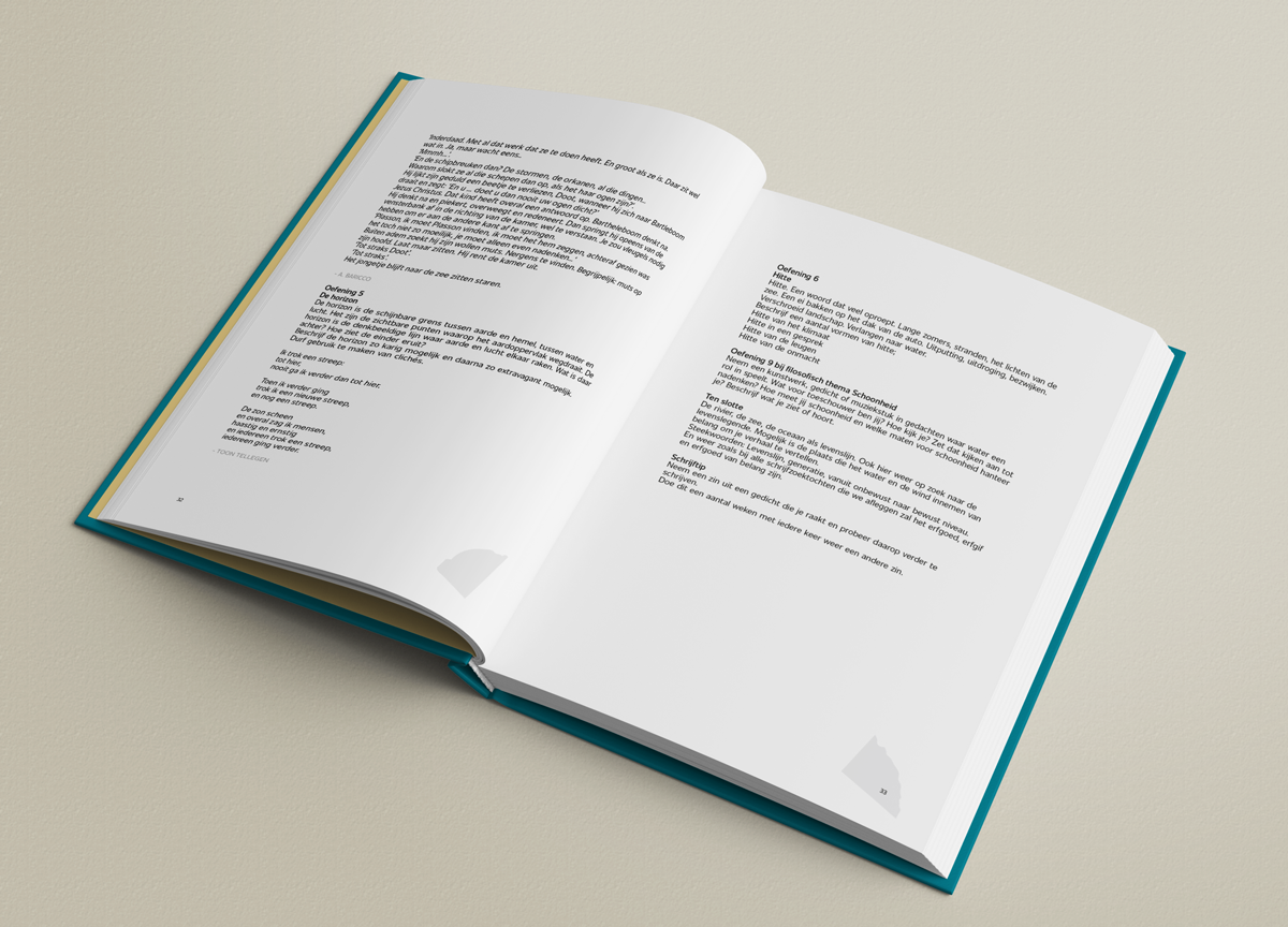 For this book on writing auto-biographical stories I took a playful approach, to emphasize that it is meant to be used as a textbook. There is room to scribble notes and corners can be folded or torn off. A workbook should be unique to its user: if you were to pick up the book in a full class room you should be able to see whom it belongs to. The book itself becomes autobiographical.