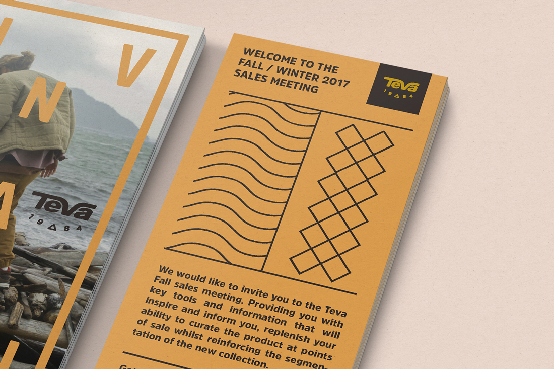 For TEVA’s 2017 winter sales meeting I designed a graphic identity, with playful typography and a spirited colour palette, to compliment the TEVA collection for the 2017 fall and winter season. Made in collaboration with Wink.